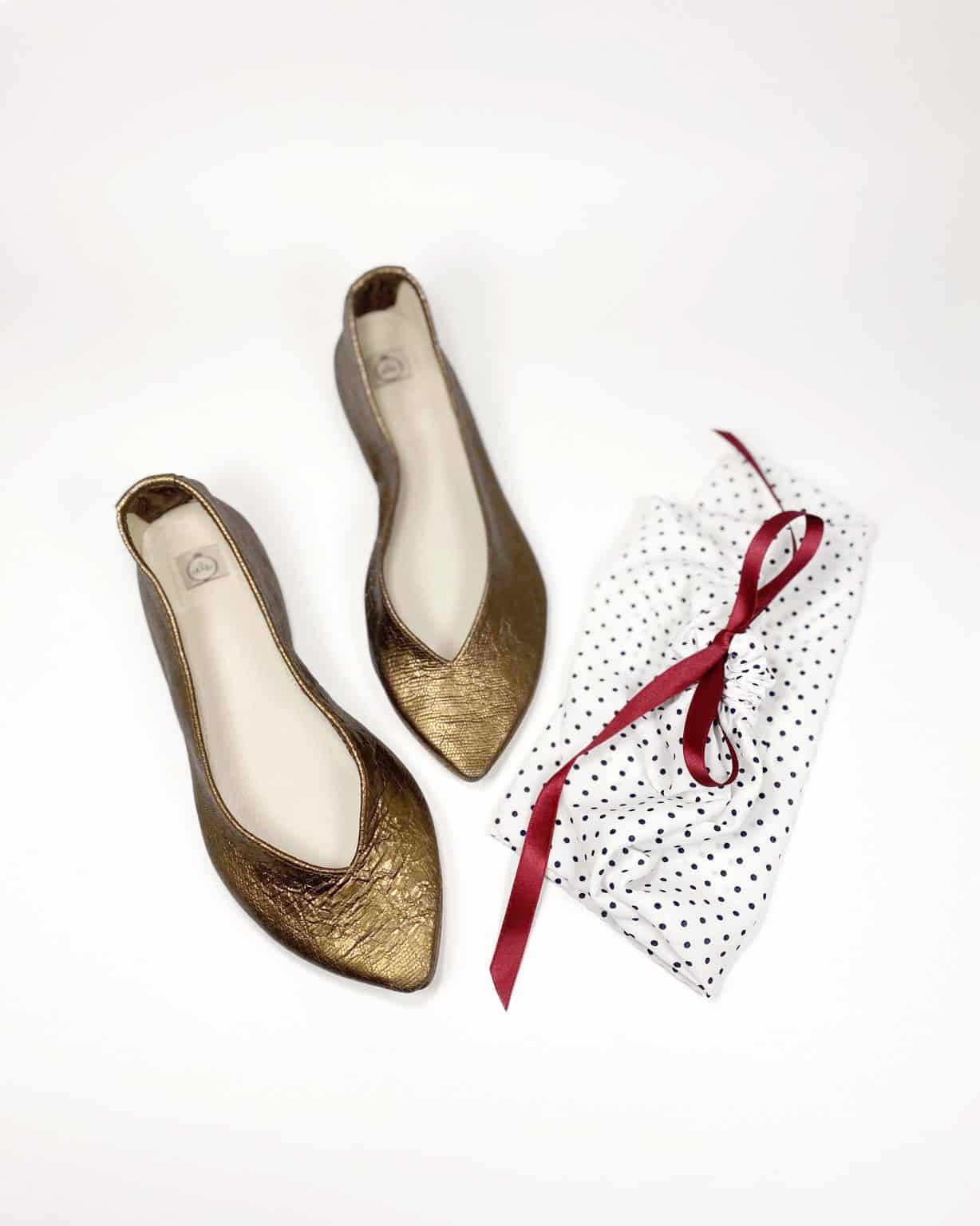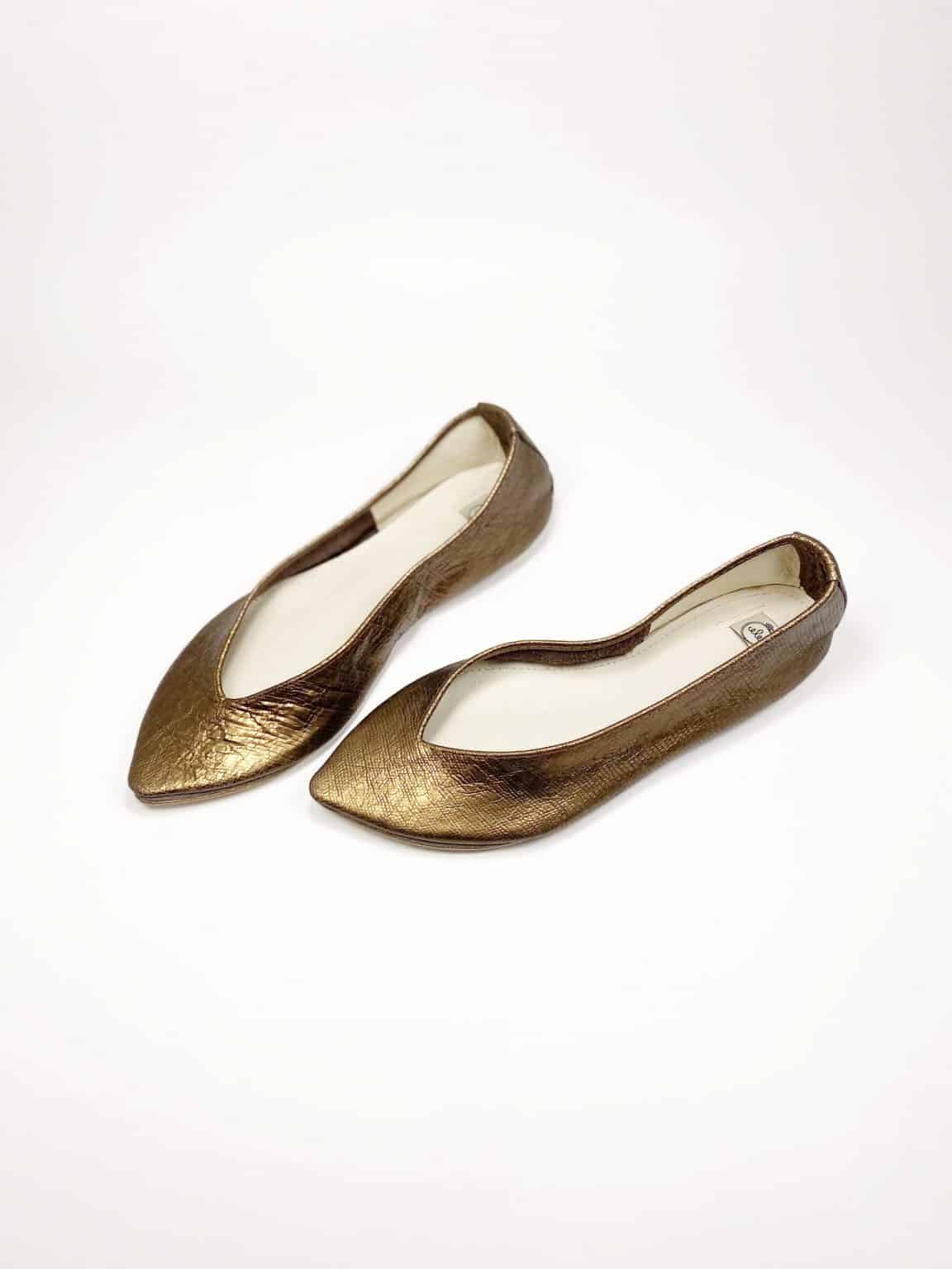 Featuring a beautiful metallic bronze finishing, these one of a kind flats are a statement makers.