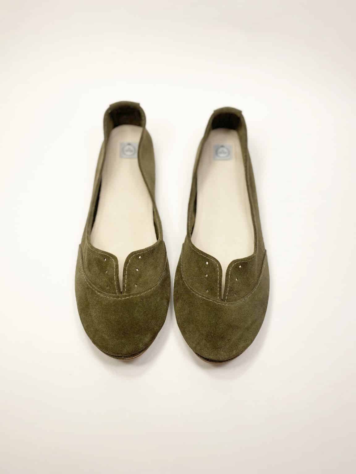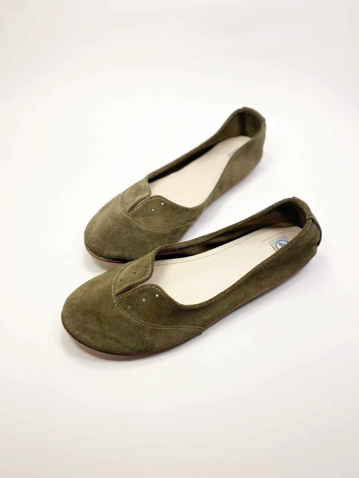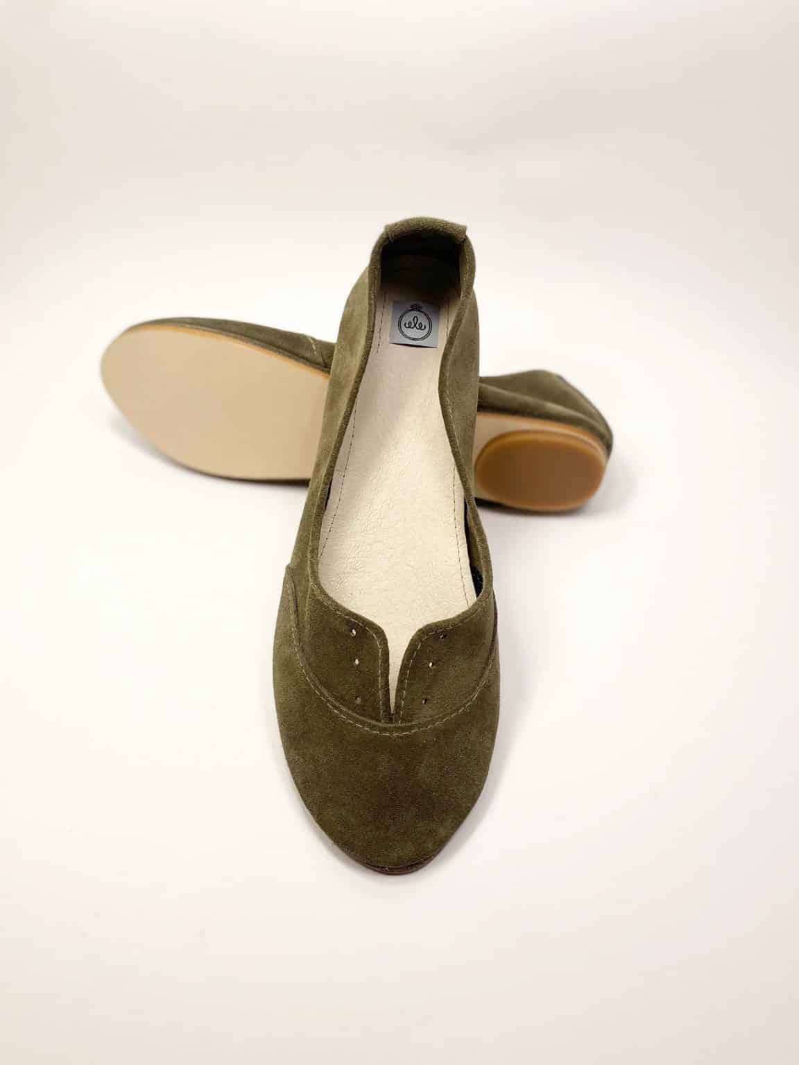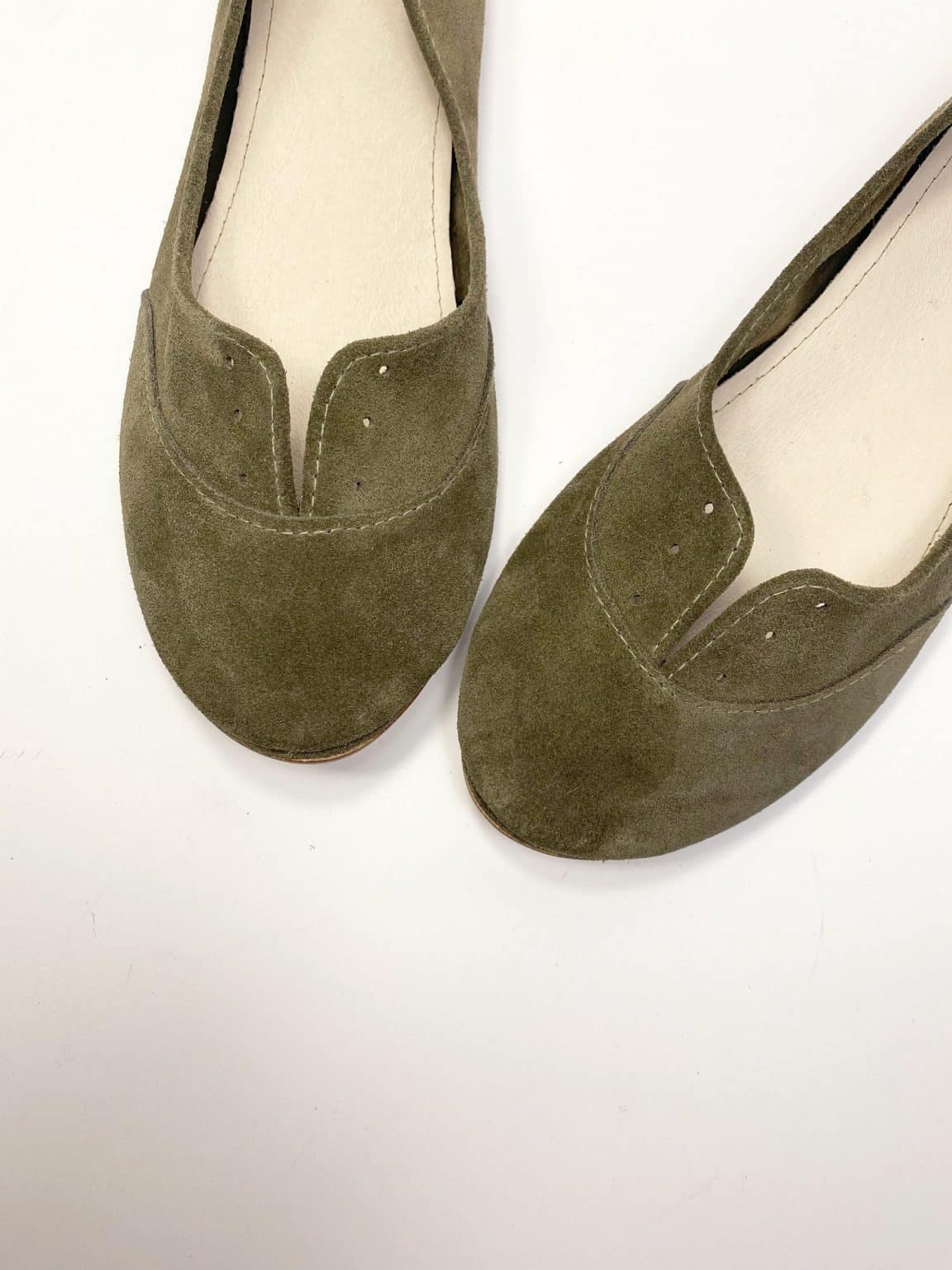 Cute and easy to match oxfords shoes. Upper in Olive Green soft Italian leather. Low heel and leather soles.