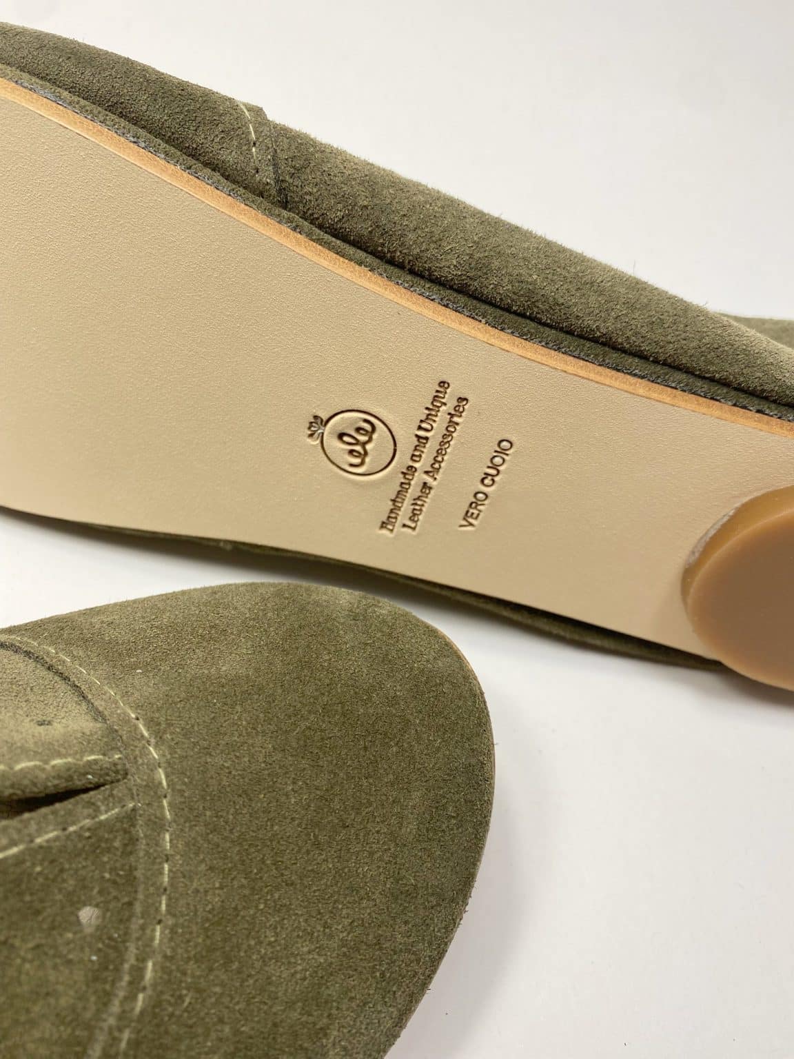 • Genuine Leather “Vero Cuoio” handmade outsoles feature fine peach skin finishing and anti slippery rubber heel, suitable for both outdoor and indoor
