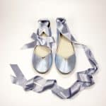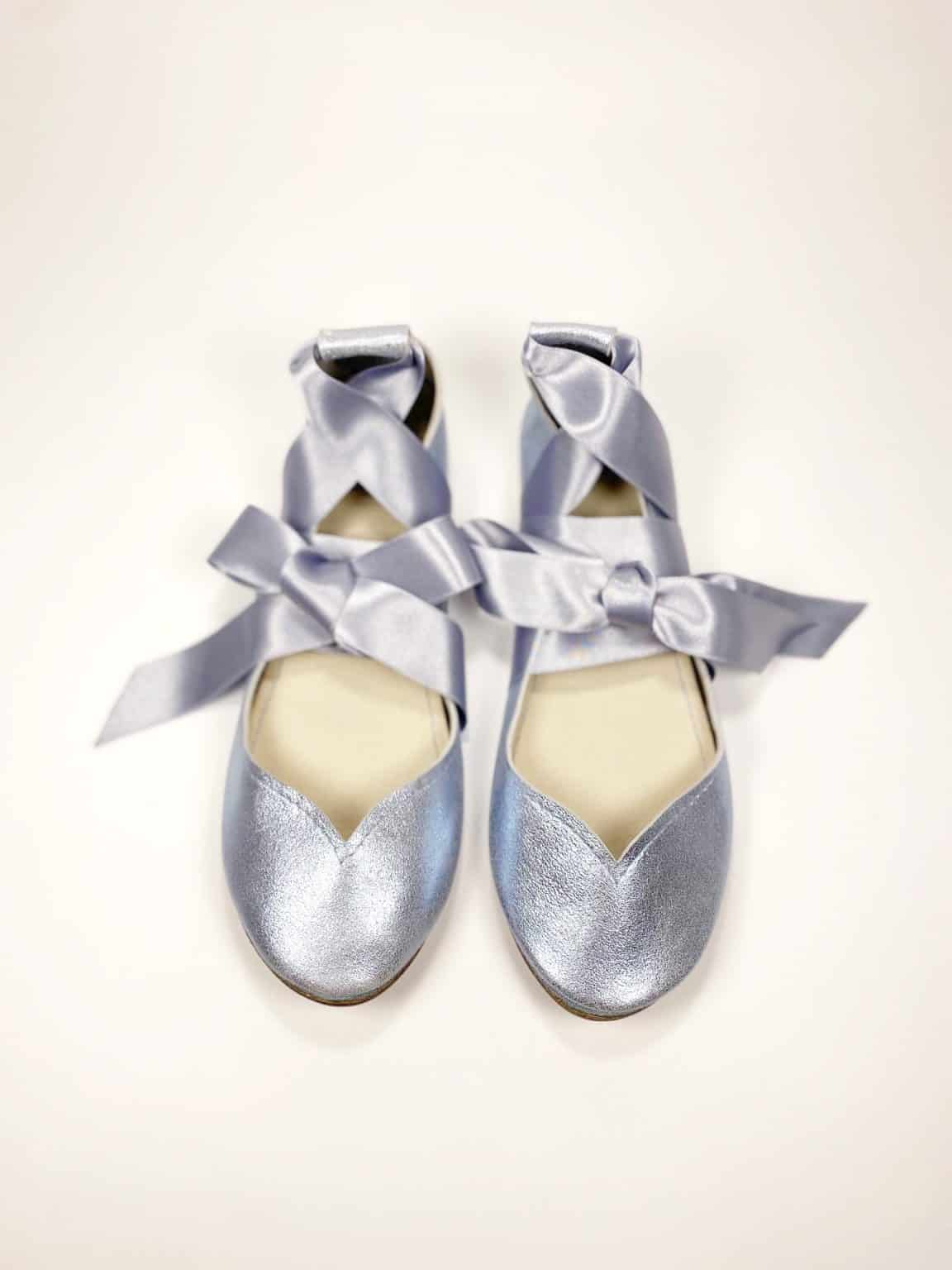 These delicate light blue flats with satin ribbons are so chic + super comfortable!