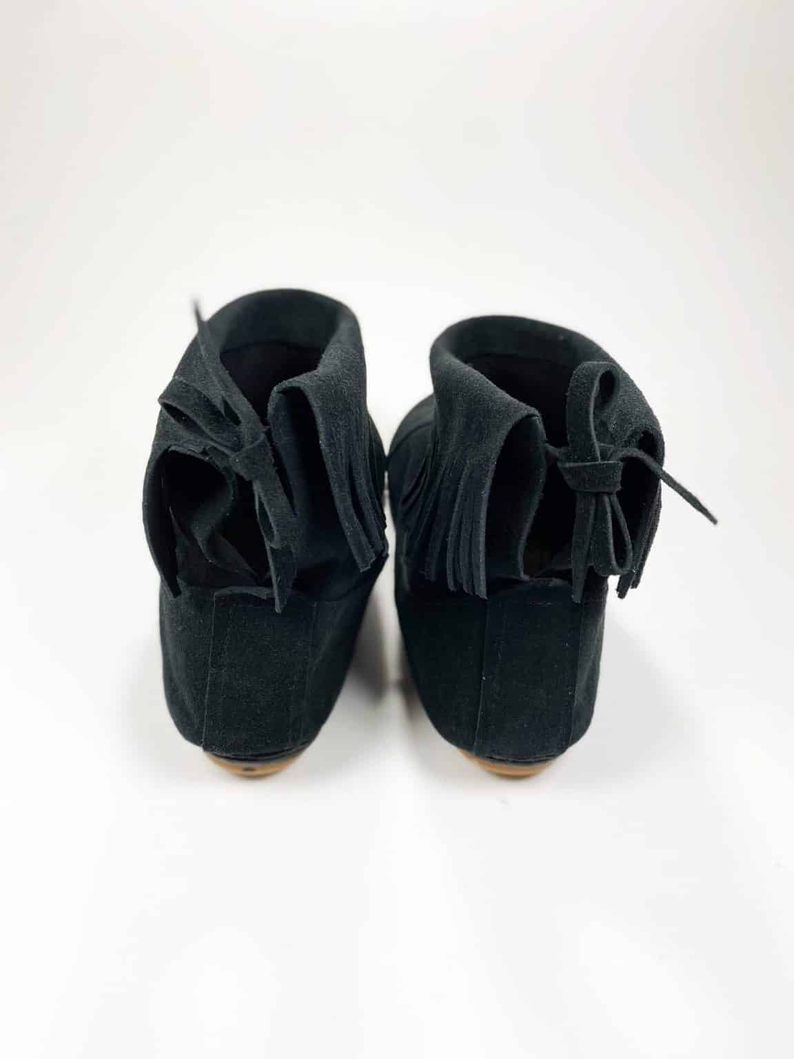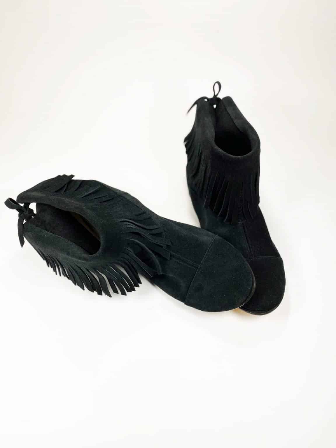 Fringed Ankle Boots in Black leather