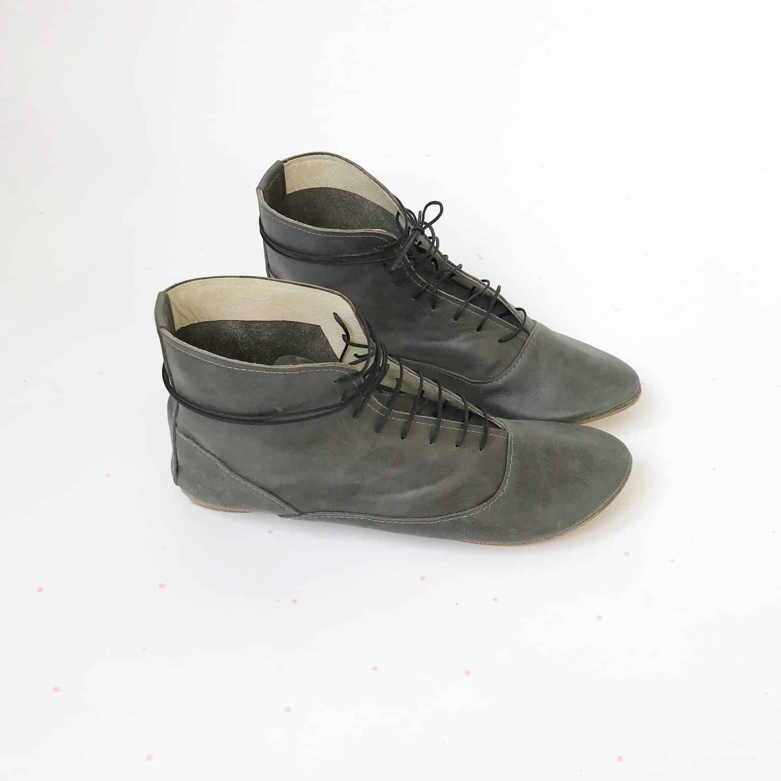 Stylish and super comfortable ankle booties. Upper in buttery soft gray Italian leather. Low heel and lace-up fastening.