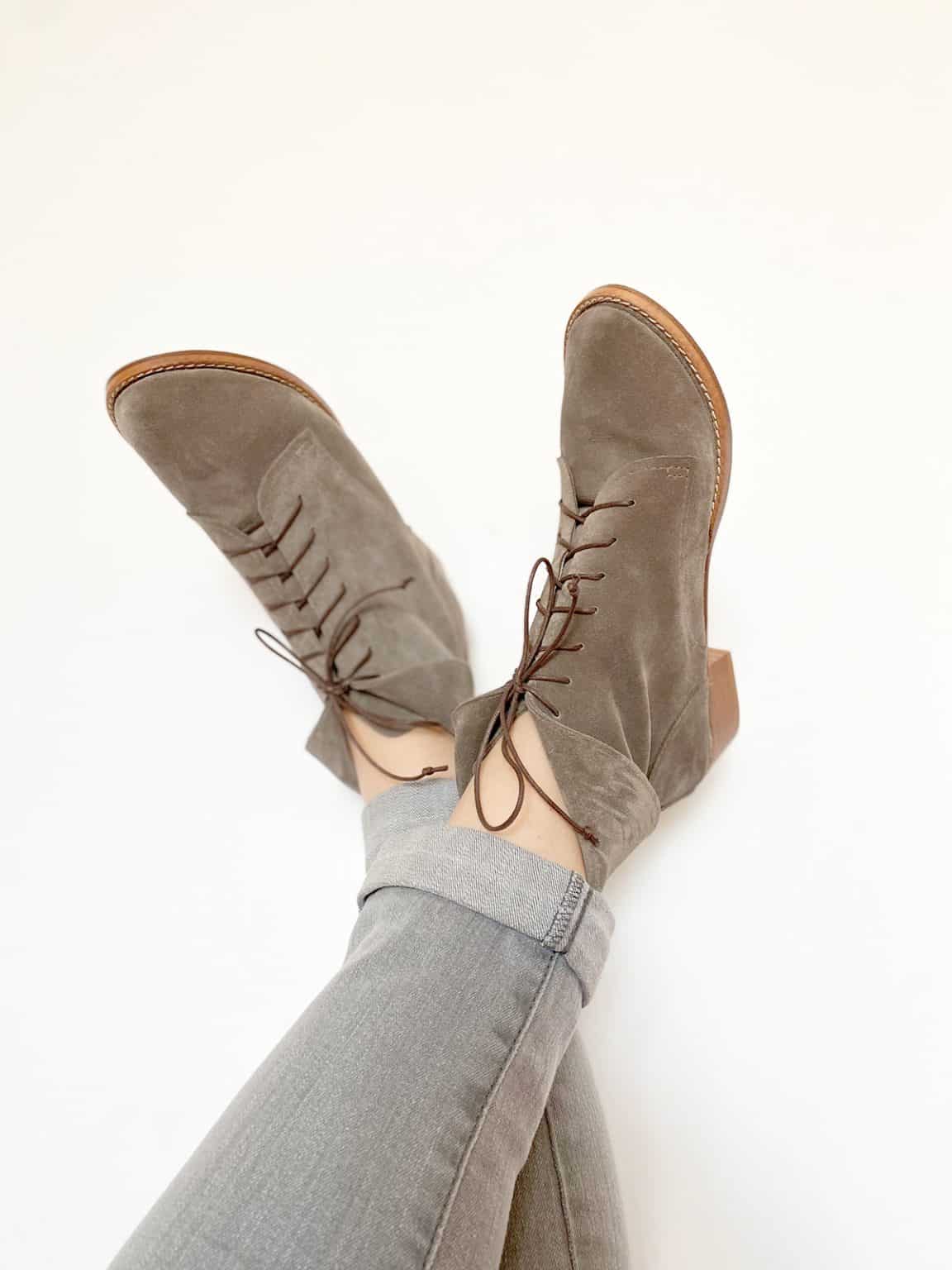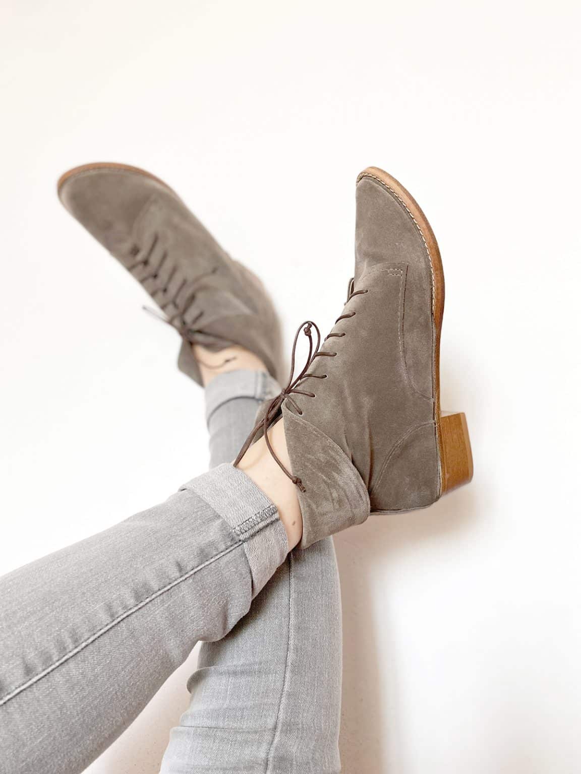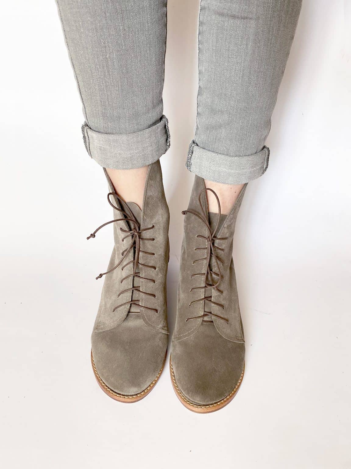 Stylish and super versatile ankle booties. Upper in buttery soft Oxblood Italian Suede. Mid comfortable heel and lace-up fastening.