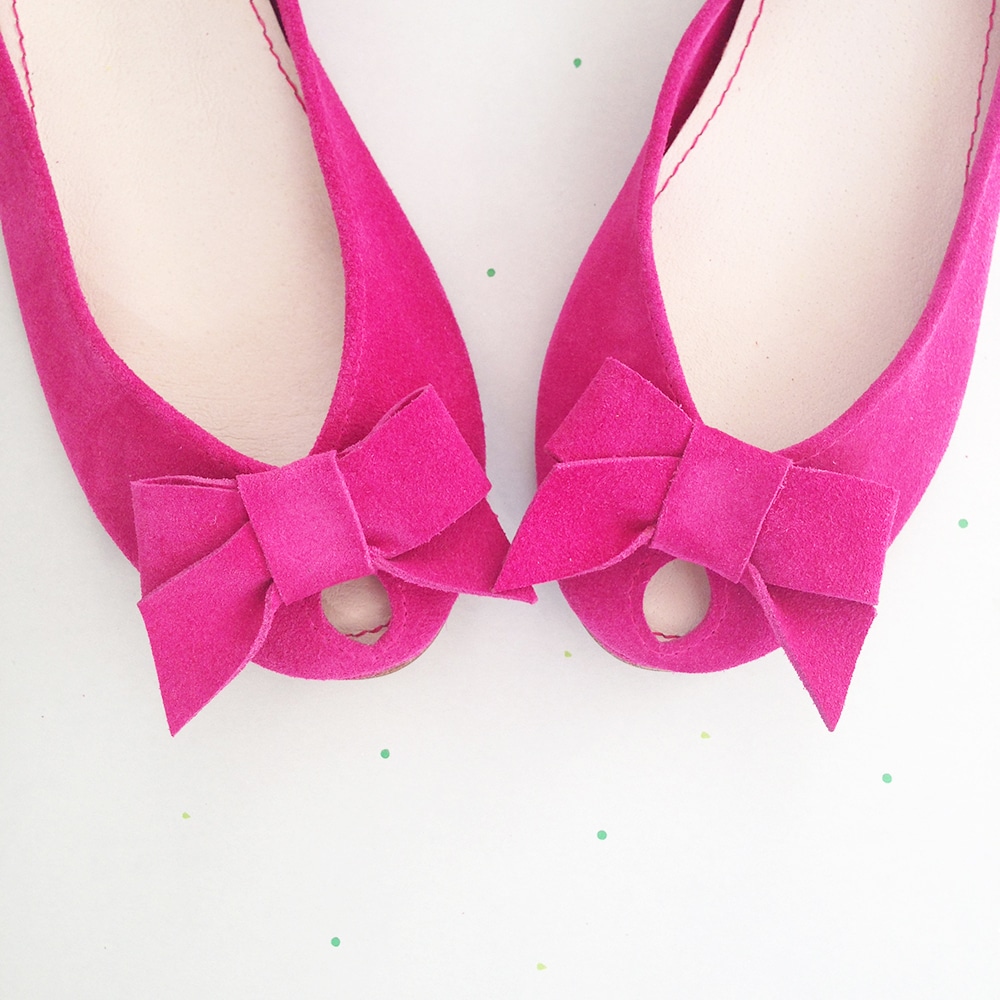 Peep Toe Shoes with Bow in Magenta Italian Leather