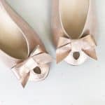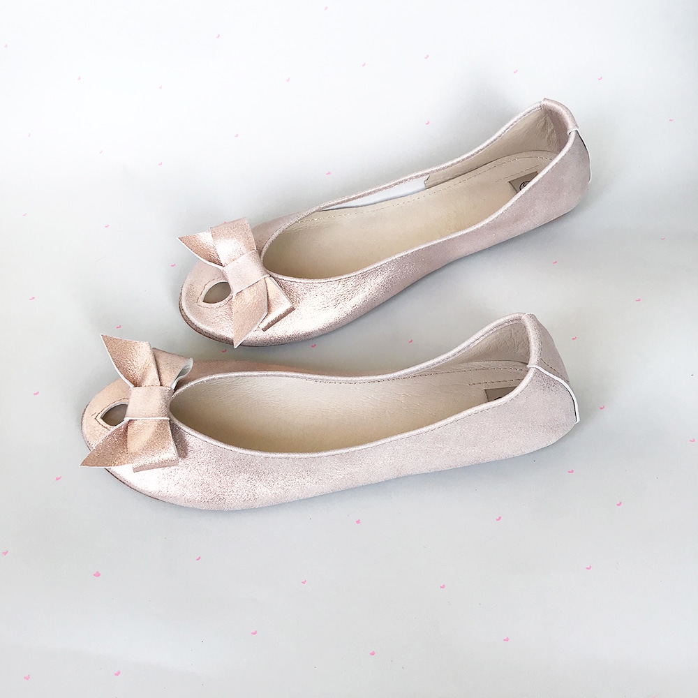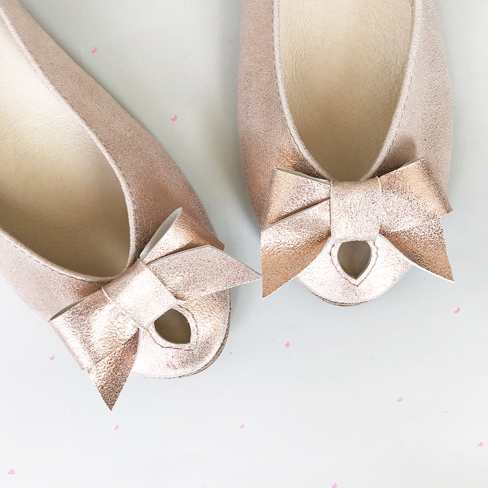 Peep Toe Shoes with Bow in Rose Gold Italian Leather