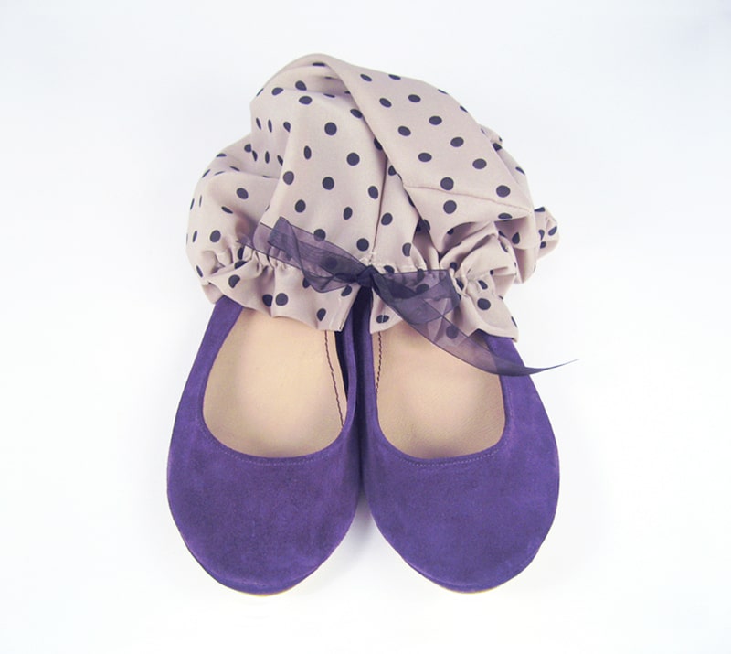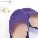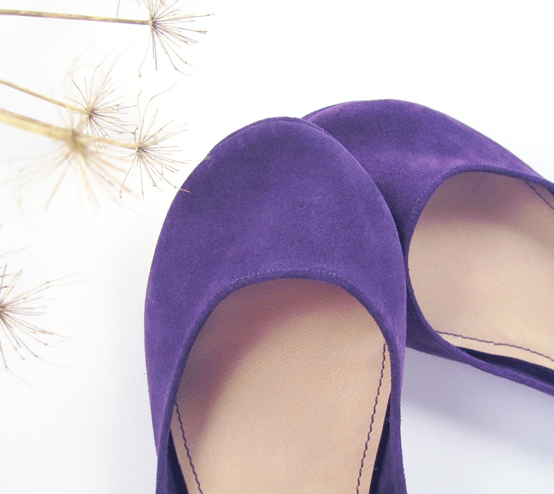 Simple yet sophisticated almond toe ballet flats. Upper in violet soft Italian suede leather. Genuine leather soles and low heel.