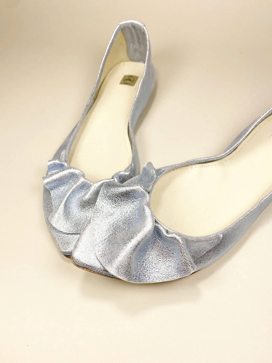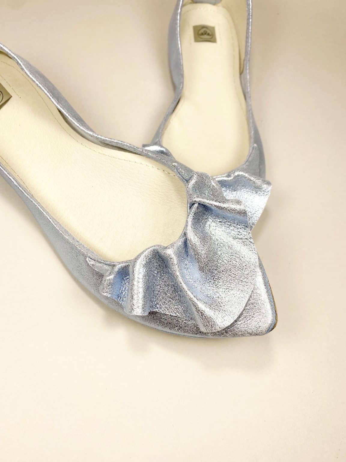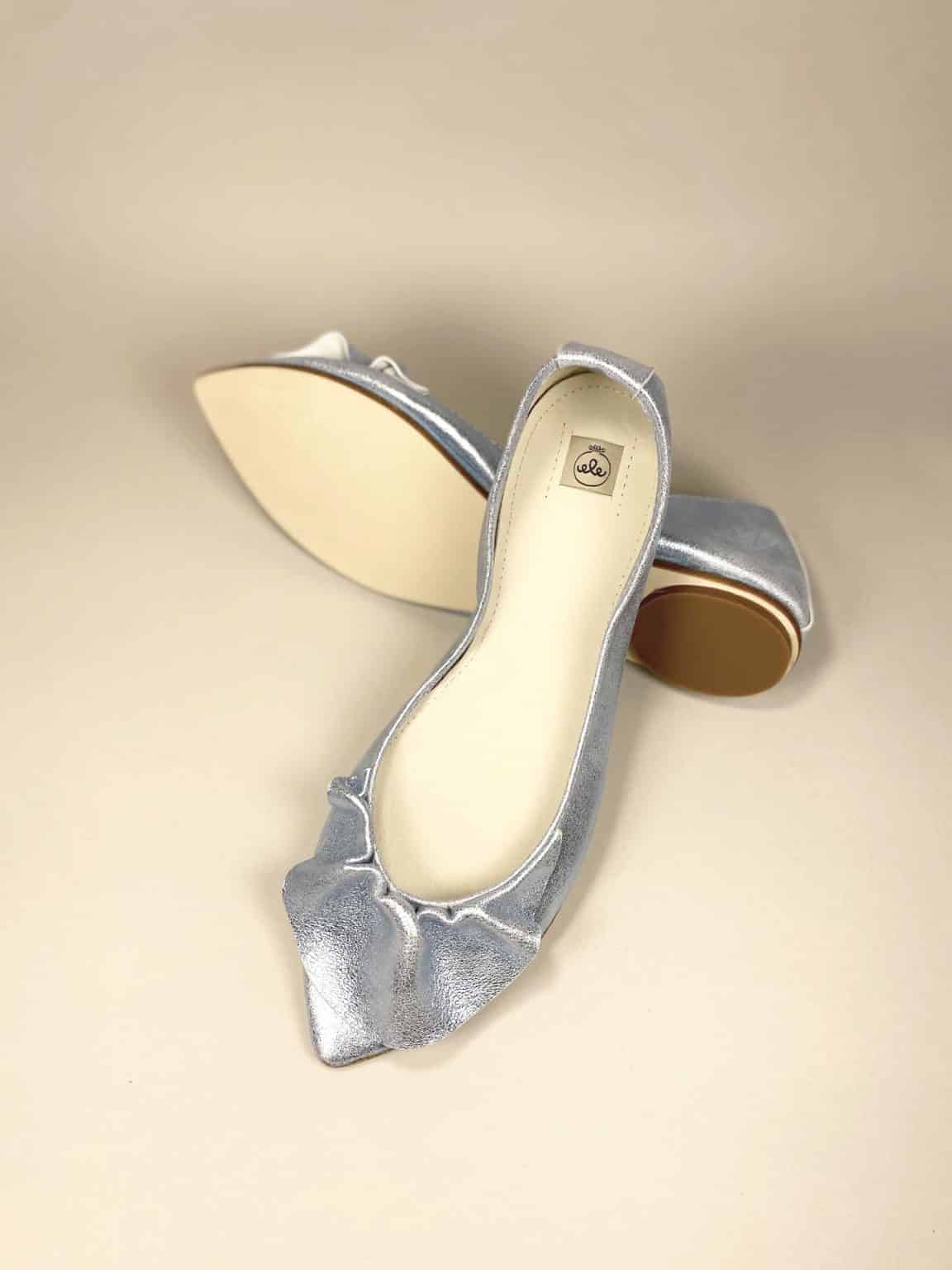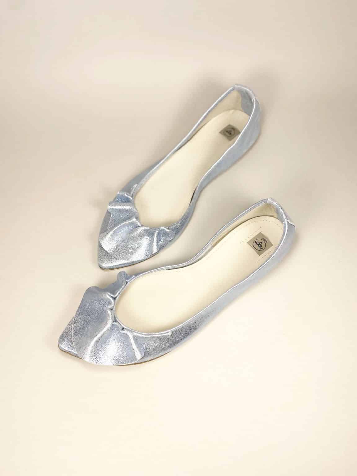Ruffled pointy flats in metallic light blue