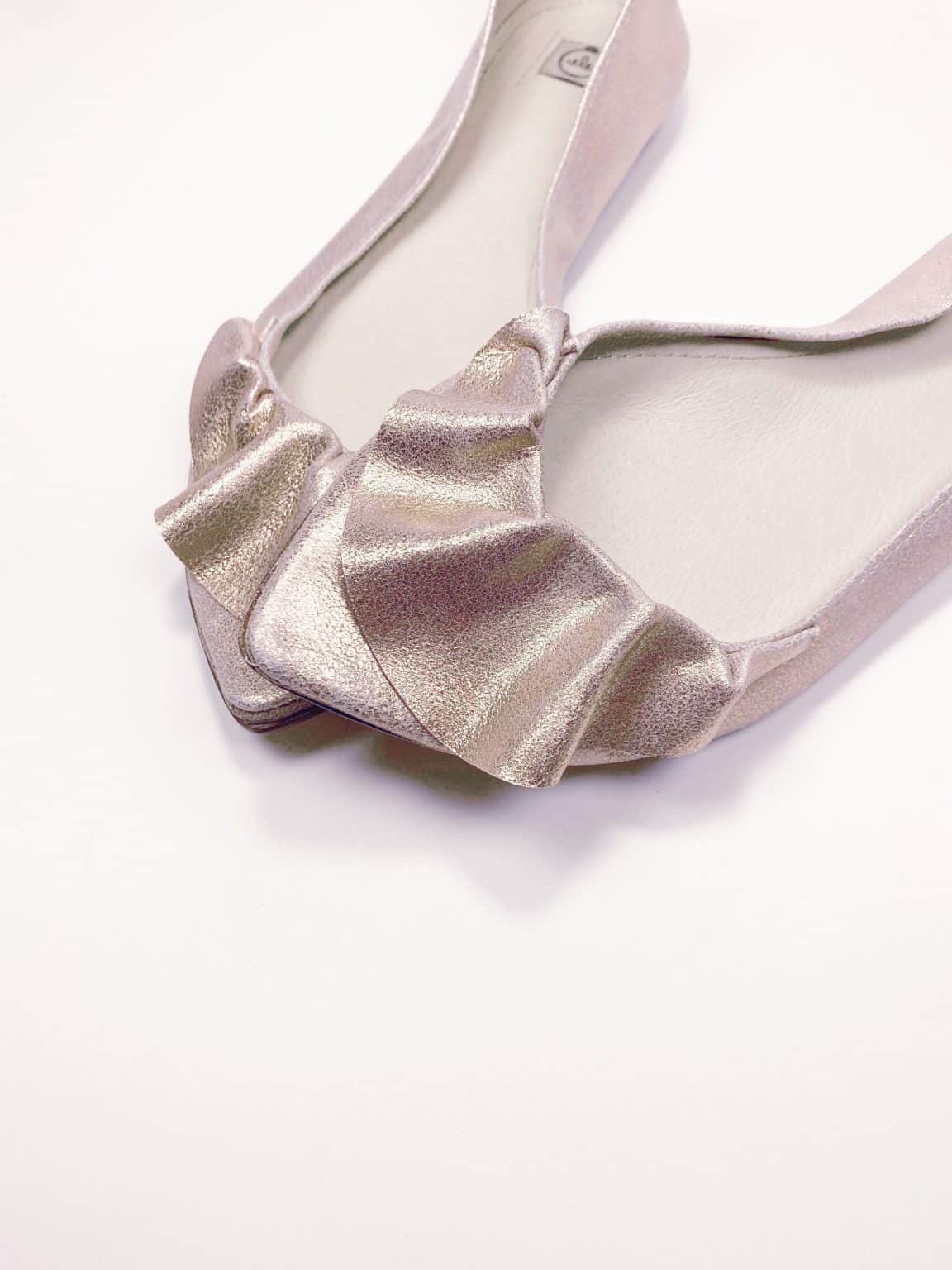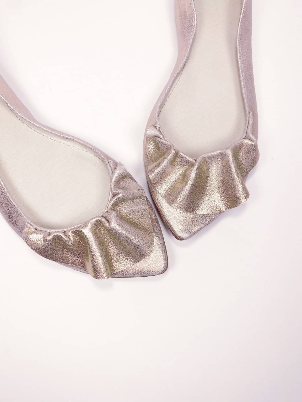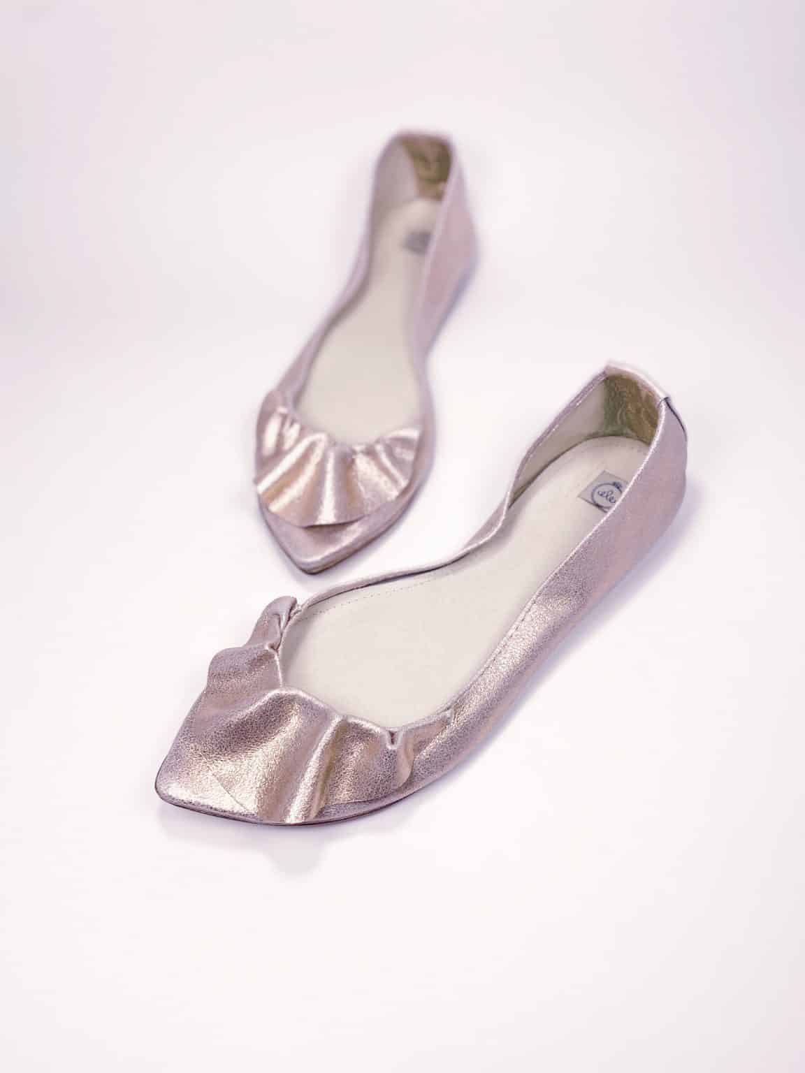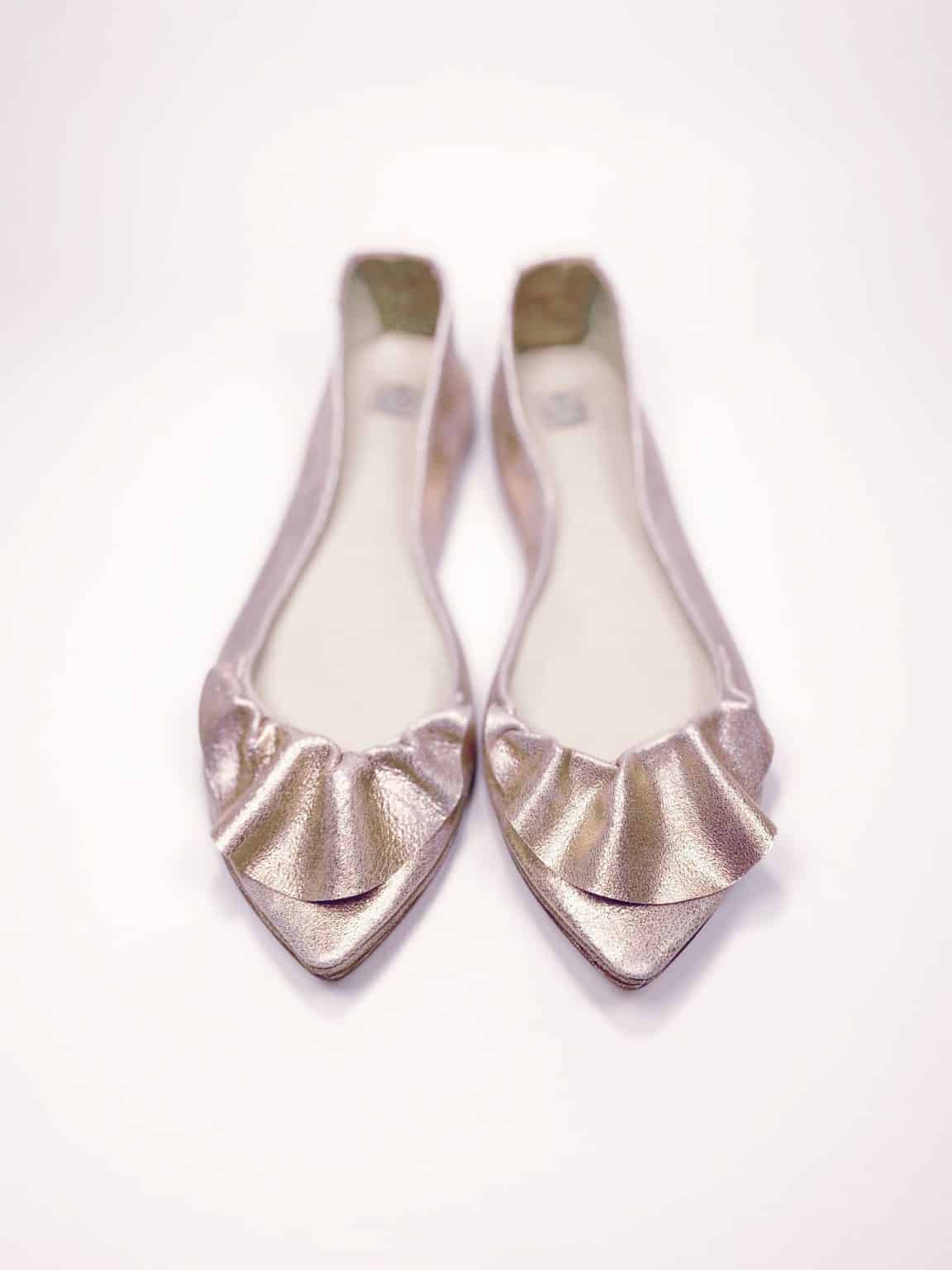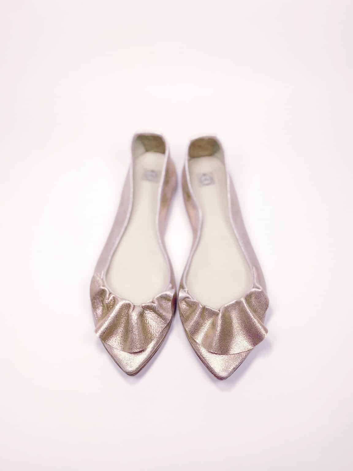 Ruffled pointy flats in rose gold