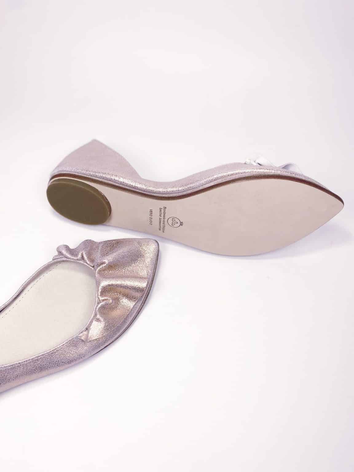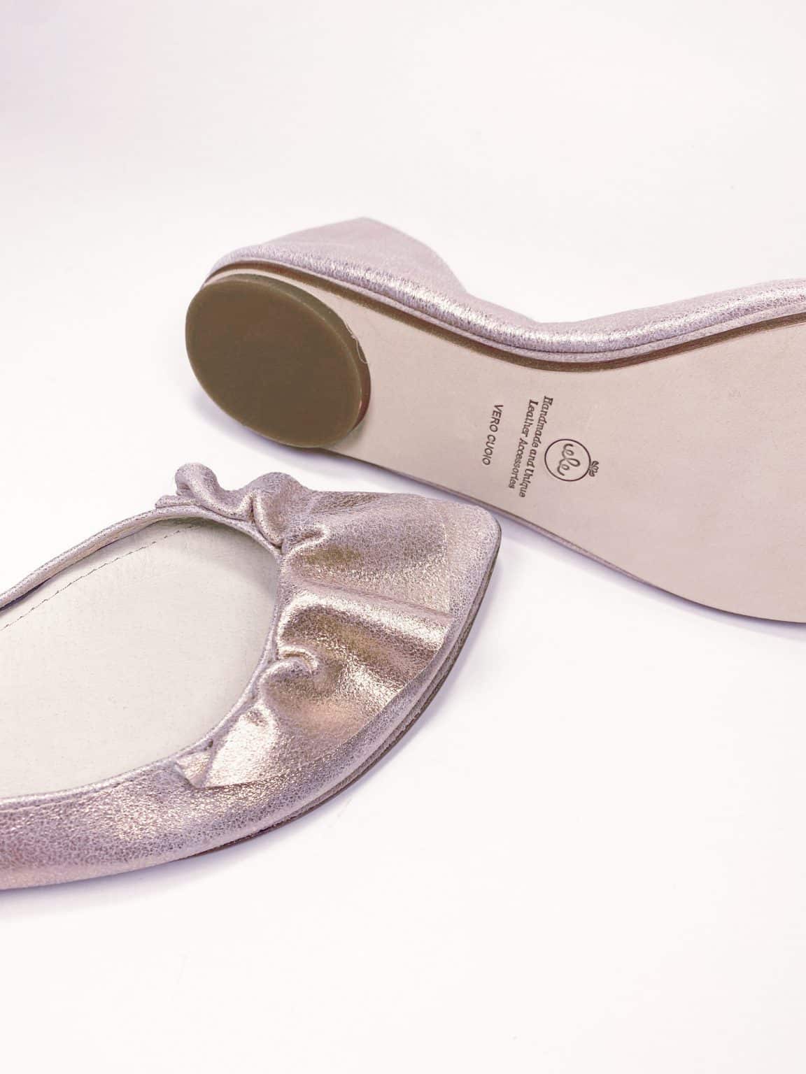 • Upper is in soft and lovely sparkly rose gold Italian luxurious leather
