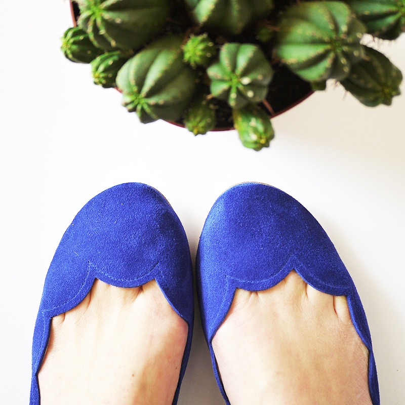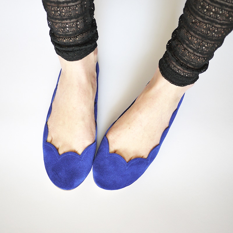 SCALLOPED ROUND FLATS IN ROYAL BLUE SOFT LEATHER