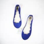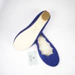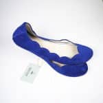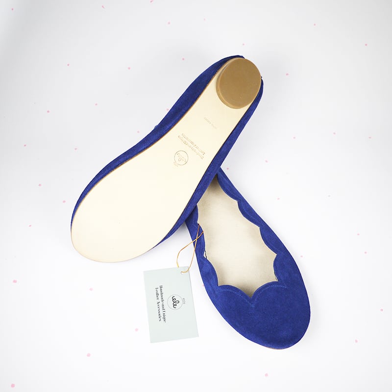 Cute scalloped almond toe ballet flats. Upper in royal blue soft Italian suede leather. Genuine leather soles and low heel.