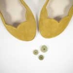 SCALLOPED ROUND FLATS IN YELLOW SOFT LEATHER