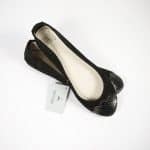 Scalloped toe FLATS in BLACK Exotic LEATHER